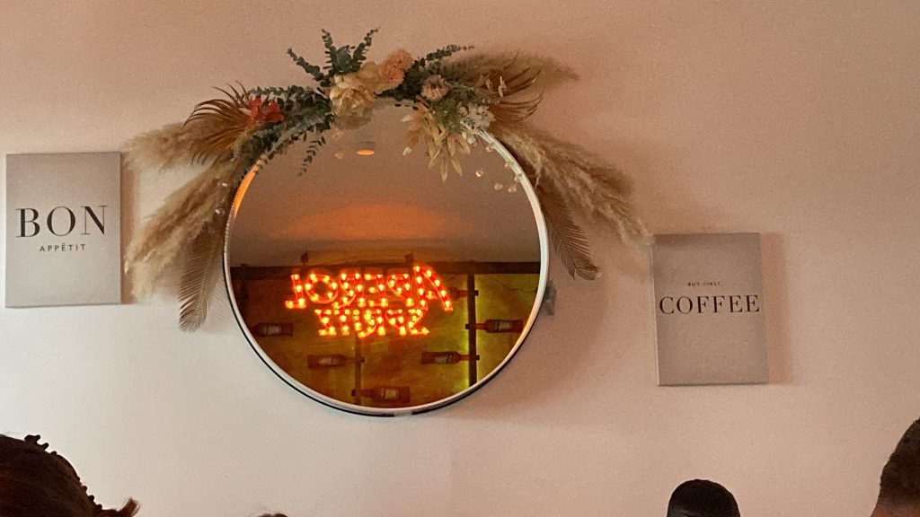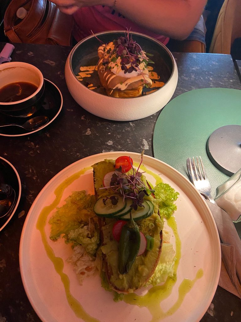 Als wir schließlich beim Café Mamas ankamen, war die Vorfreude groß. Das kleine Café war gemütlich eingerichtet, mit liebevollen Details und einer Atmosphäre, die sofort zum Wohlfühlen einlud. Der Duft von frisch gebackenem Kuchen und Kaffee lag in der Luft – ein Traum! Jeder fand schnell seinen Lieblingsplatz, ob drinnen oder draußen, und dann wurde bestellt: Von fluffigen Pancakes über herzhafte Sandwiches bis zu bunten Smoothies war alles dabei. Natürlich durfte auch der legendäre Schokokuchen nicht fehlen, über den manche schon Tage vorher gesprochen hatten.