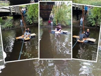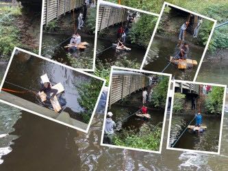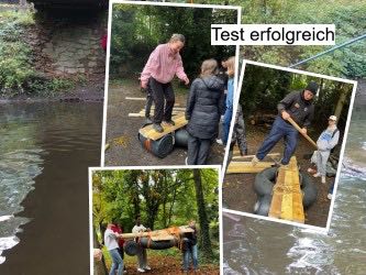 21 Schülerinnen und Schüler und ihr Klassenlehrerteam, unterstützt von der Schulsozialarbeiterin, stellten sich einem Abenteuer: Zum Teambuilding wurde mit vereinten Kräften ein Floß gebaut, mit dem die Alb überquert werden konnte. Da musste gedacht, getüftelt und ausprobiert werden.
