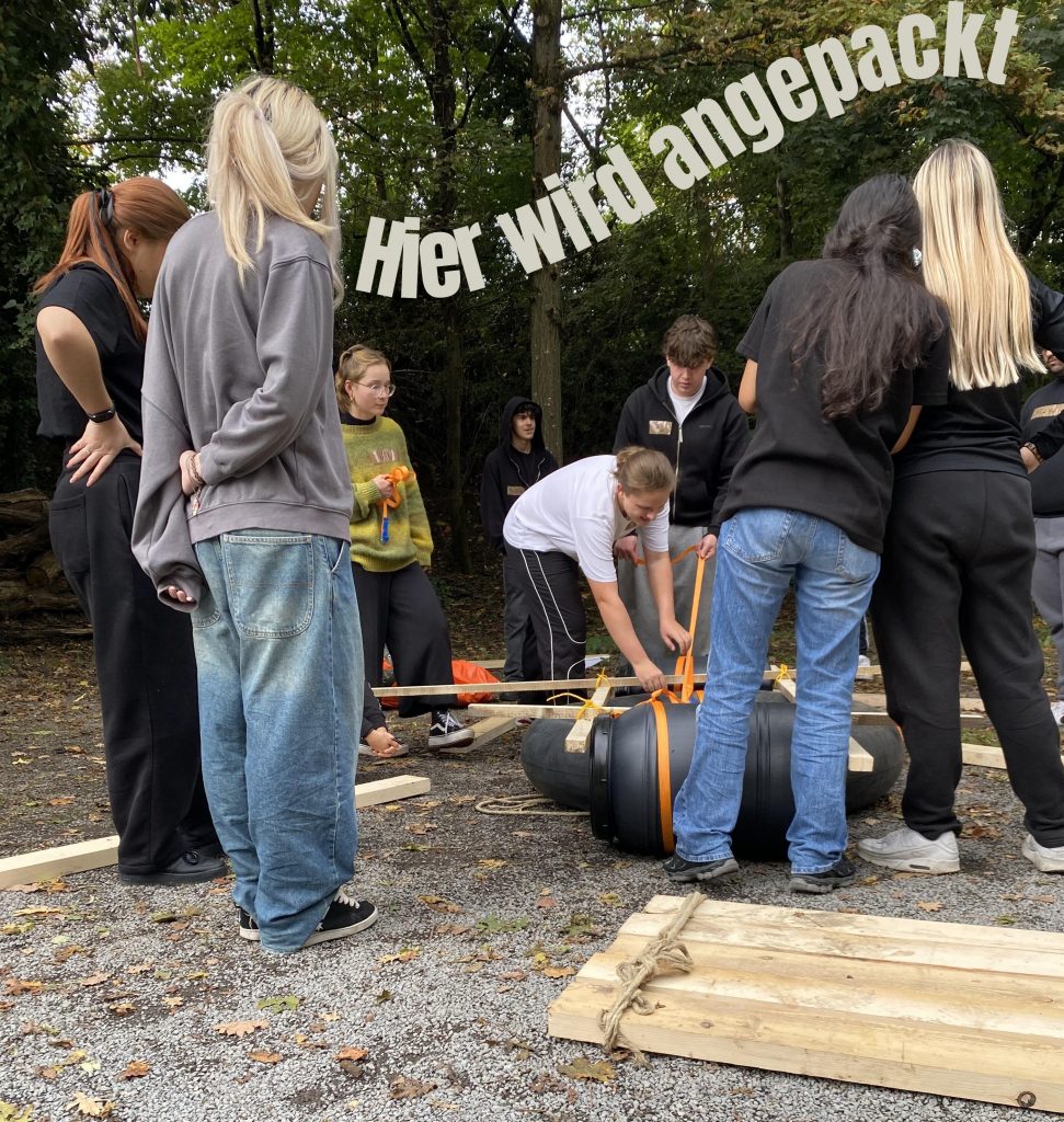 Am 09.10.25 unternahm die Klasse BFW1/1 zusammen mit den Klassenlehrerinnen und der Schulsozialarbeiterin Tabea Gottstein einen besonderen Ausflug in die Günther-Klotz-Anlage in Karlsruhe. Beim Floßbauen standen Teamarbeit, Kreativität und Spaß im Vordergrund.