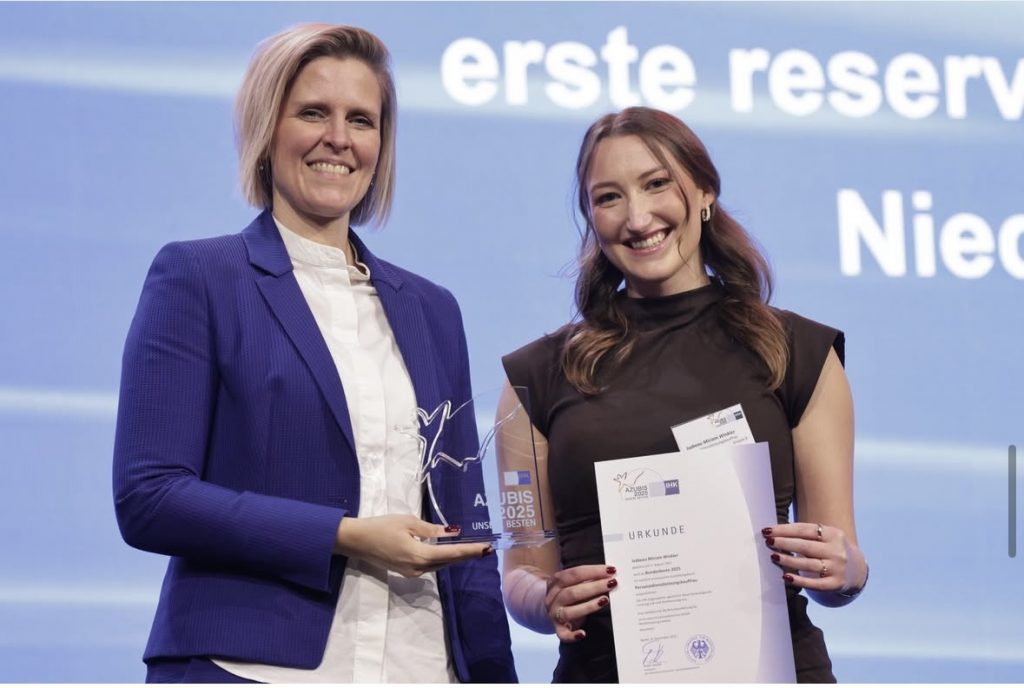 Neben Joana Scheer (bundesbeste Sport- und Fitnesskauffrau) stand unsere Schülerin Isabeau Winkler ebenfalls auf dem Siegertreppchen: Sie erreichte das bundesweit beste Ergebnis als Personaldienstleistungskauffrau – und das, obwohl sie den Turbo eingelegt hat und ihre Ausbildung um ein Jahr verkürzt hat!